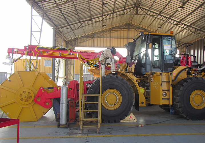 Asimismo, a comienzos de este año 2017, se recibió requerimiento de la Minera Las Bambas, Perú, ubicada relativamente cerca de la ciudad de Cusco, propiedad de MMG Australia. Esta vez el enrollador debía ser un CRH C900, por las necesidades distintas de esa mina. Con dos tornamesas independientes, ambas motrices rotatorias.