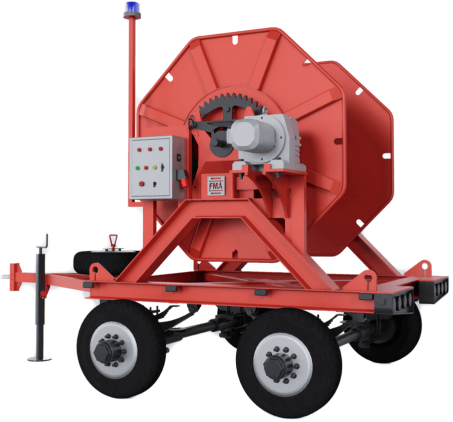 El Carro de arrastre porta cables CR450T es un equipo auxiliar diseñado para su uso en faena minera, cuya función principal es la recolección, ordenamiento y redisposición temporal de cables eléctricos dispuestos sobre caminos de tránsito o sectores operativos, permitiendo liberar rutas y reducir interferencias con la operación. Este equipo permite retirar cable suelto desde el terreno y enrollarlo de forma controlada en un carrete, facilitando su posterior traslado, almacenamiento o reubicación según las necesidades de la faena, contribuyendo al orden y a la continuidad operacional. El Carro de Arrastre Porta Cables FMA no reemplaza a los equipos principales de tendido o manejo de cables, sino que actúa como un sistema de apoyo complementario, orientado exclusivamente al manejo mecánico de cable en estado desenergizado, como solución flexible para labores auxiliares en faenas mineras. El carrete puede variar dependiendo del cable informado por el cliente.